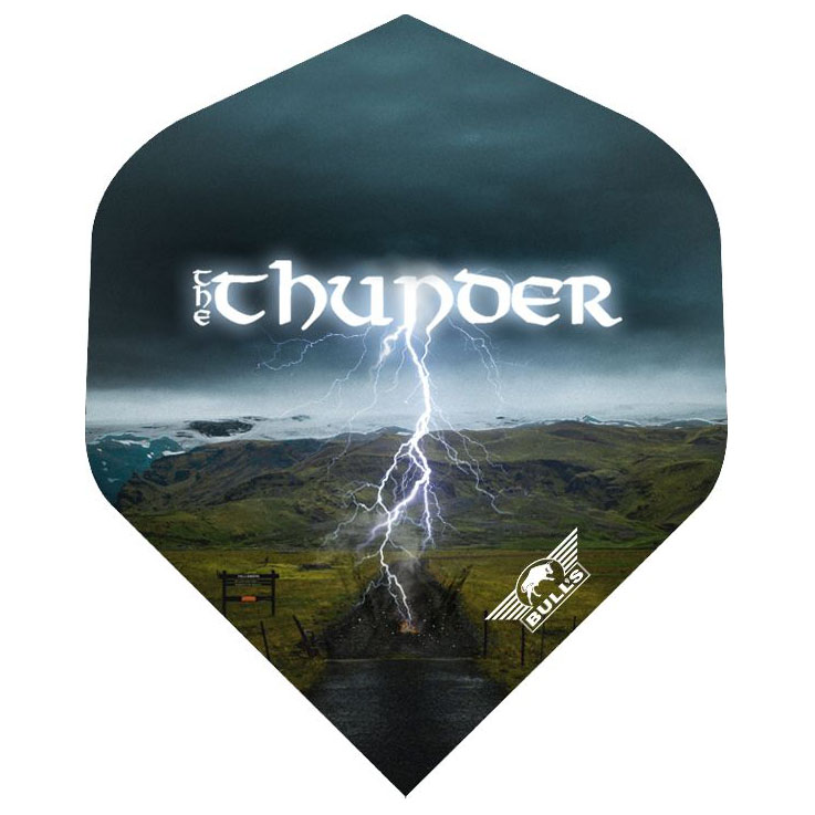 Pluma para el juego de dardos de gran calidad de la marca Bulls Darts. Pluma modelo Powerflite diseño P The Thunder .