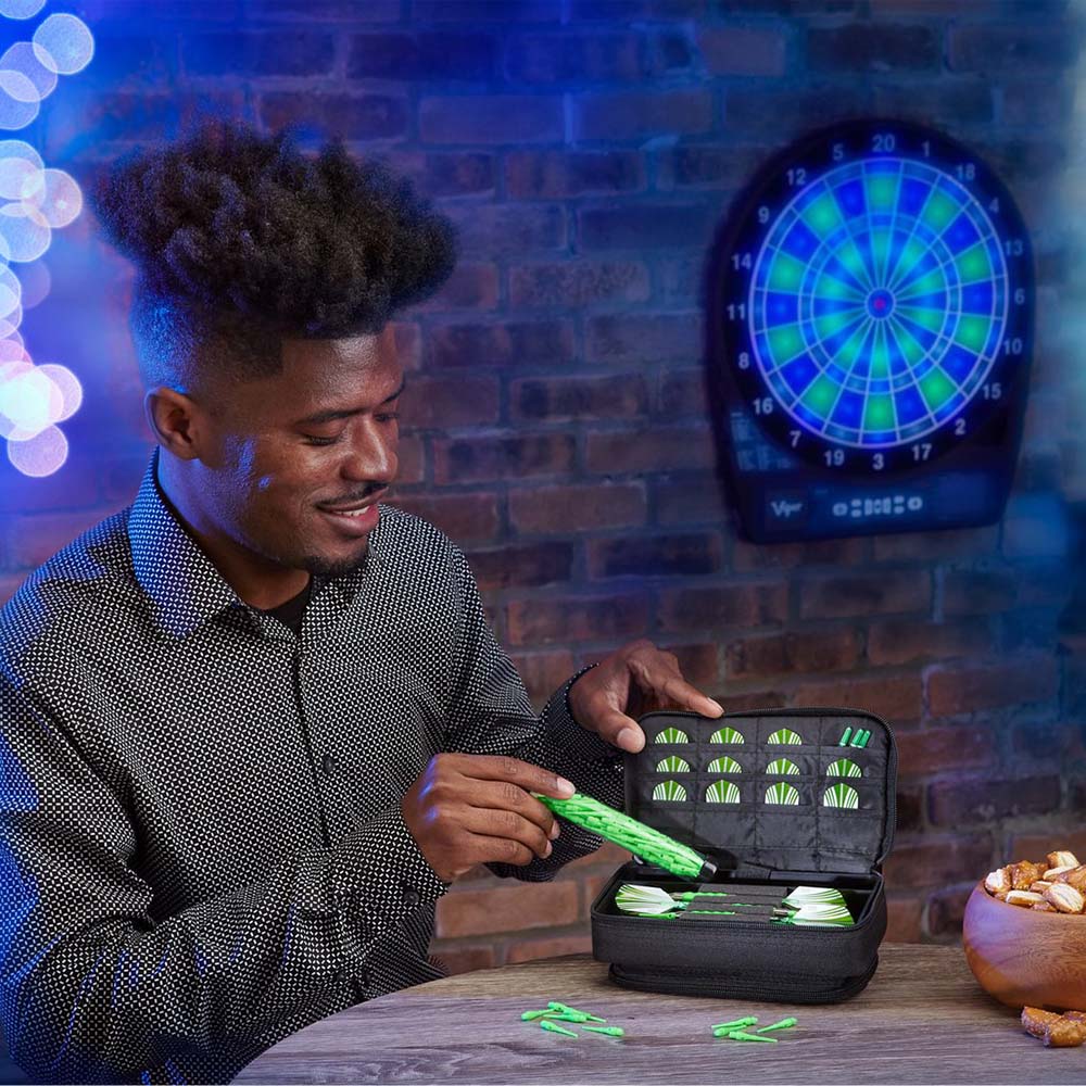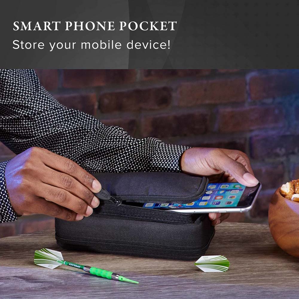 Incluye un gran bolsillo con cremallera de gran capacidad para transporte gran cantidad de repuestos, es capaz de satisfacer al jugador de dardos mas exigente.