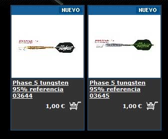 Primero tendremos que elegir un producto, en nuestro caso compraremos unos dardos de punta de plástico, en concreto Phase 5.