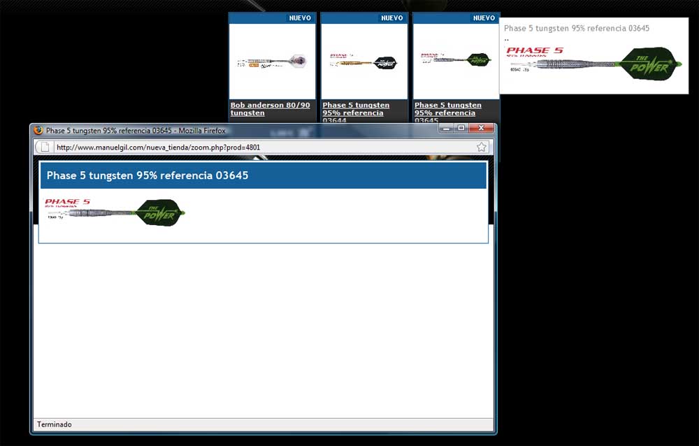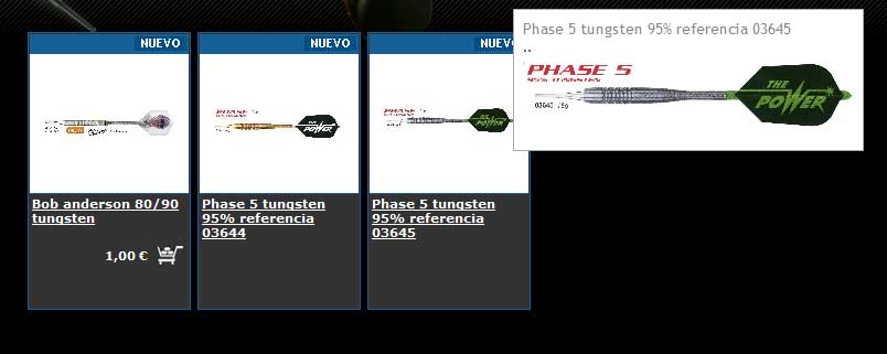 Cuando pasas por encima de un producto se abre una ventana, mostrándote el producto y sus características a un tamaño mayor, como puedes ver en la siguiente imagen.