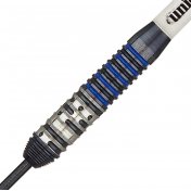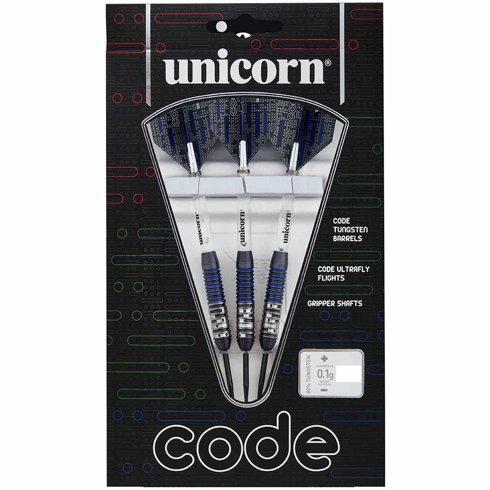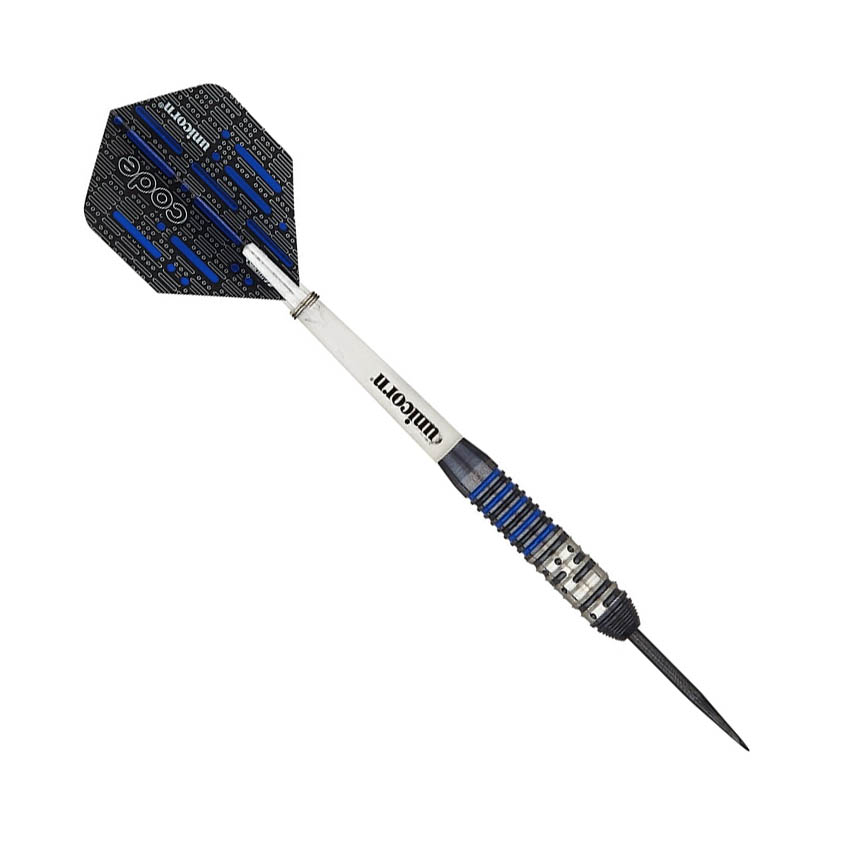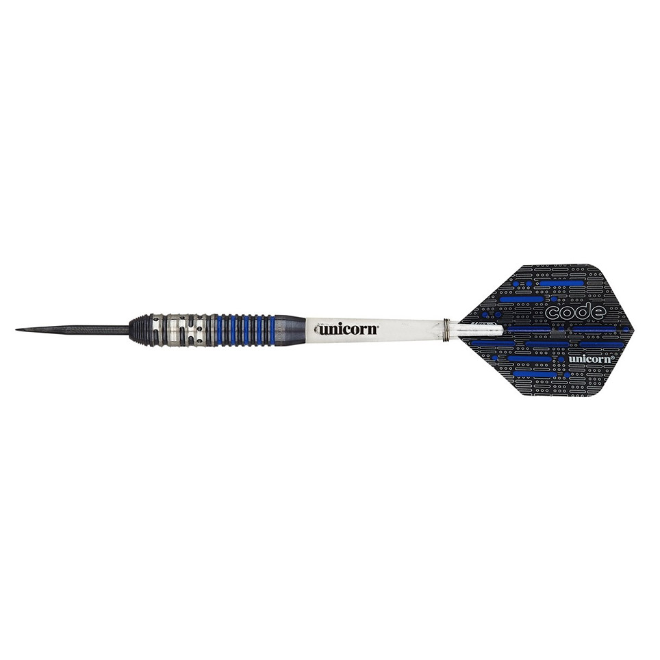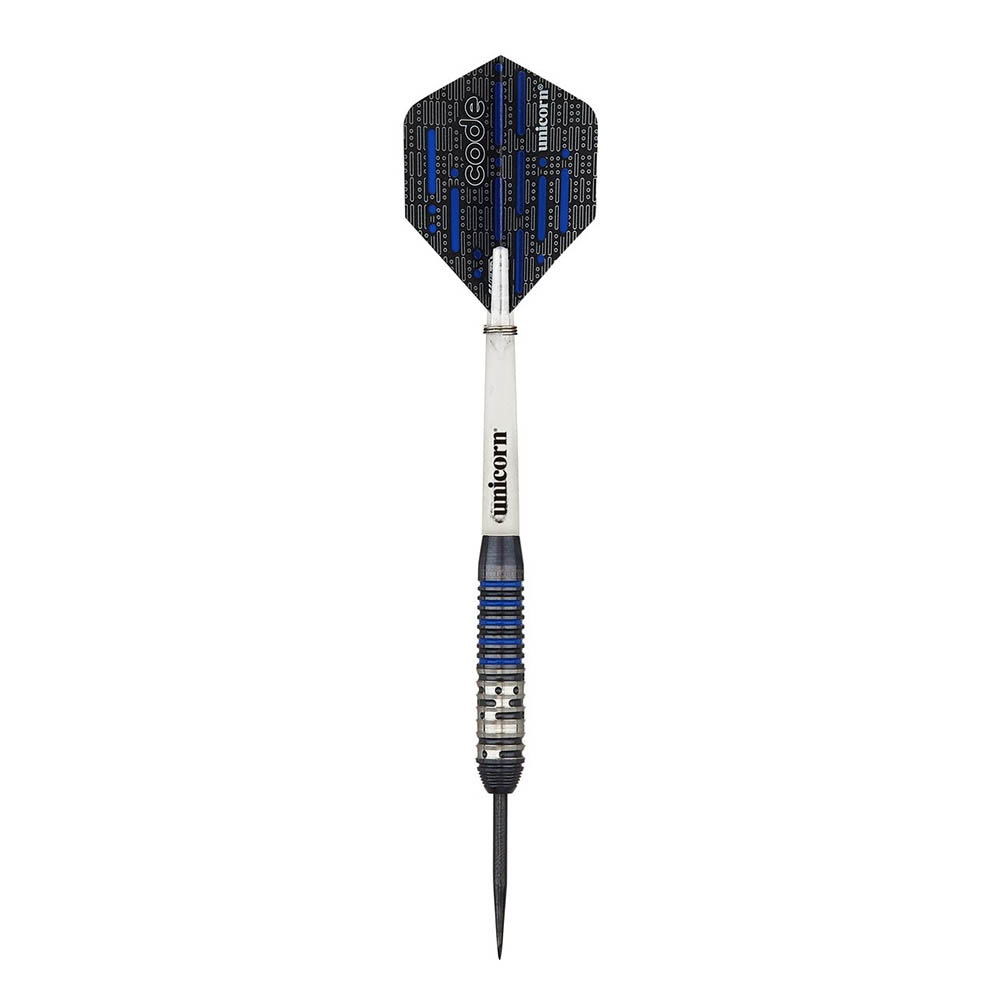 Dardo de gran calidad de la marca Unicorn Darts, dardos de la gama Code modelo Blue, dardos que su primer característica se ve a simple vista ya que es un dardos corto su longitud es de tan solo 37mm y con un acabado de gran calidad y con un agarre especial.