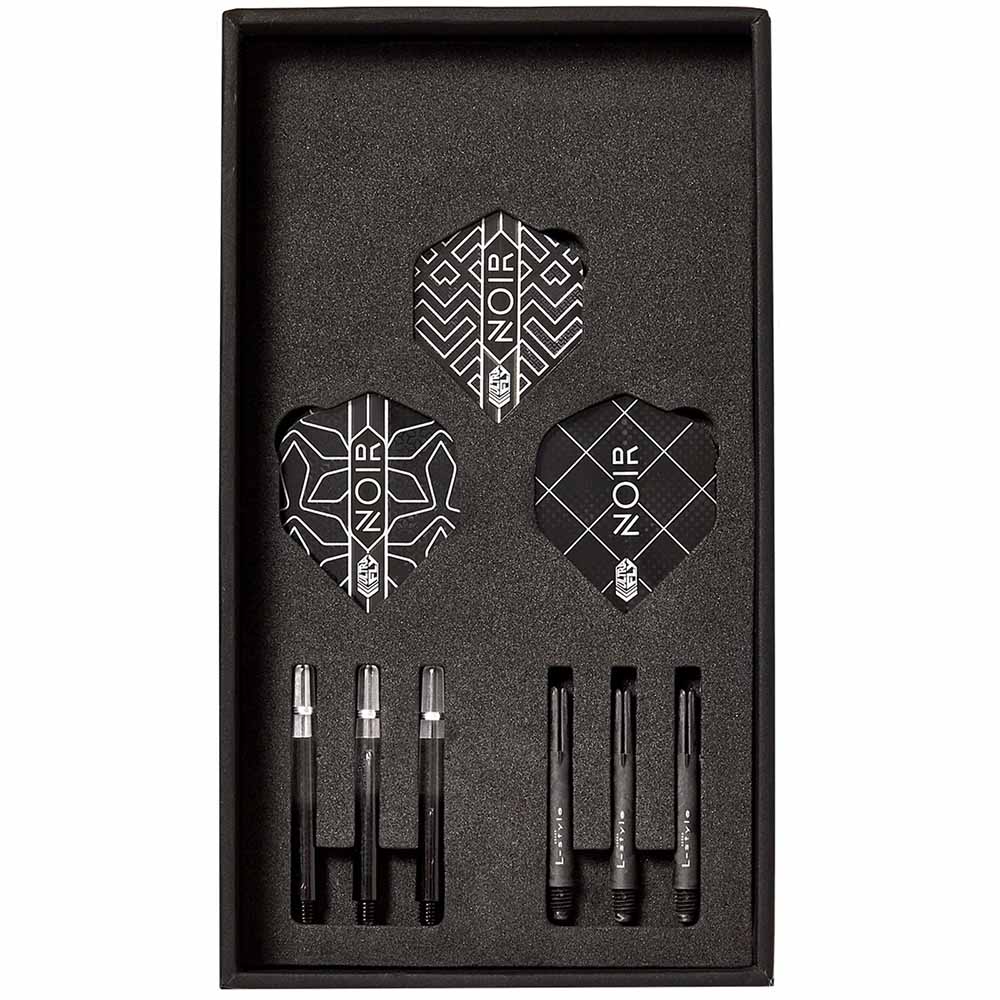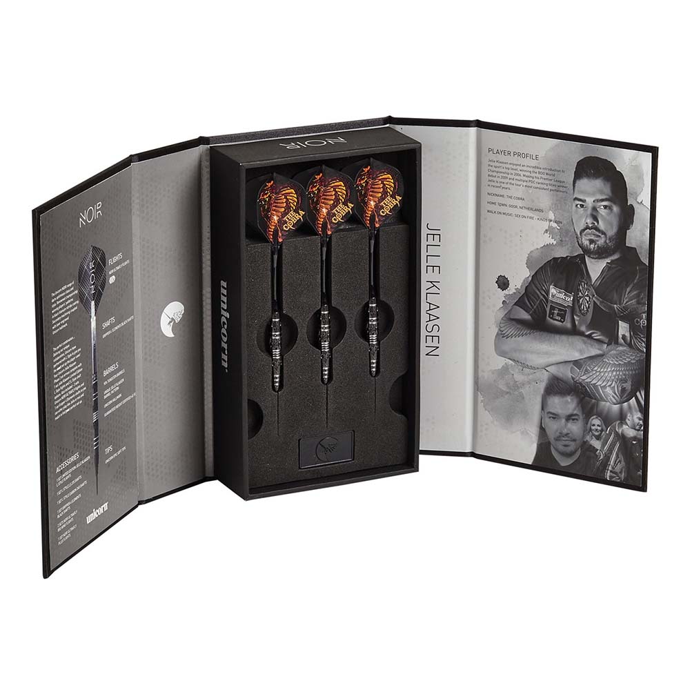El juego de dardos se compone por 1 set de 3 cuerpos, 1 juego plumas Jelle Klaasen Limited Edition,1 Set L Style LS 370 Shafts, 1 Set L Style Carbon 260 Shafts,1 Set Gripper 4 Elements Black Shafts,2 Sets Noir ULTRAFLY Big Wing Flights,1 Set Noir ULTRAFLY Plus Flights y puntas Epic Soft Tip 2ba.