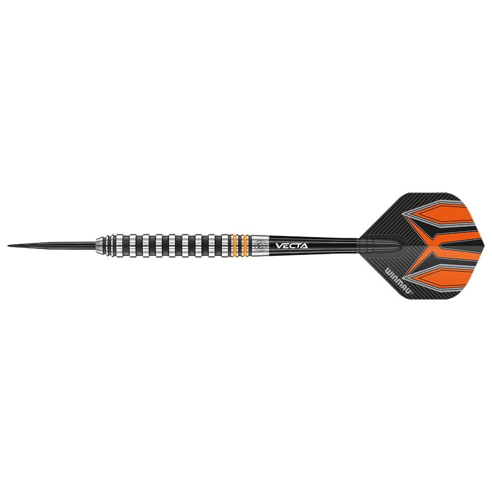 El dardos Fury es un dardos muy elegante y sencillo a la vez, con un cuerpo acabado en color tungsteno natural y detalles en negro y naranja.