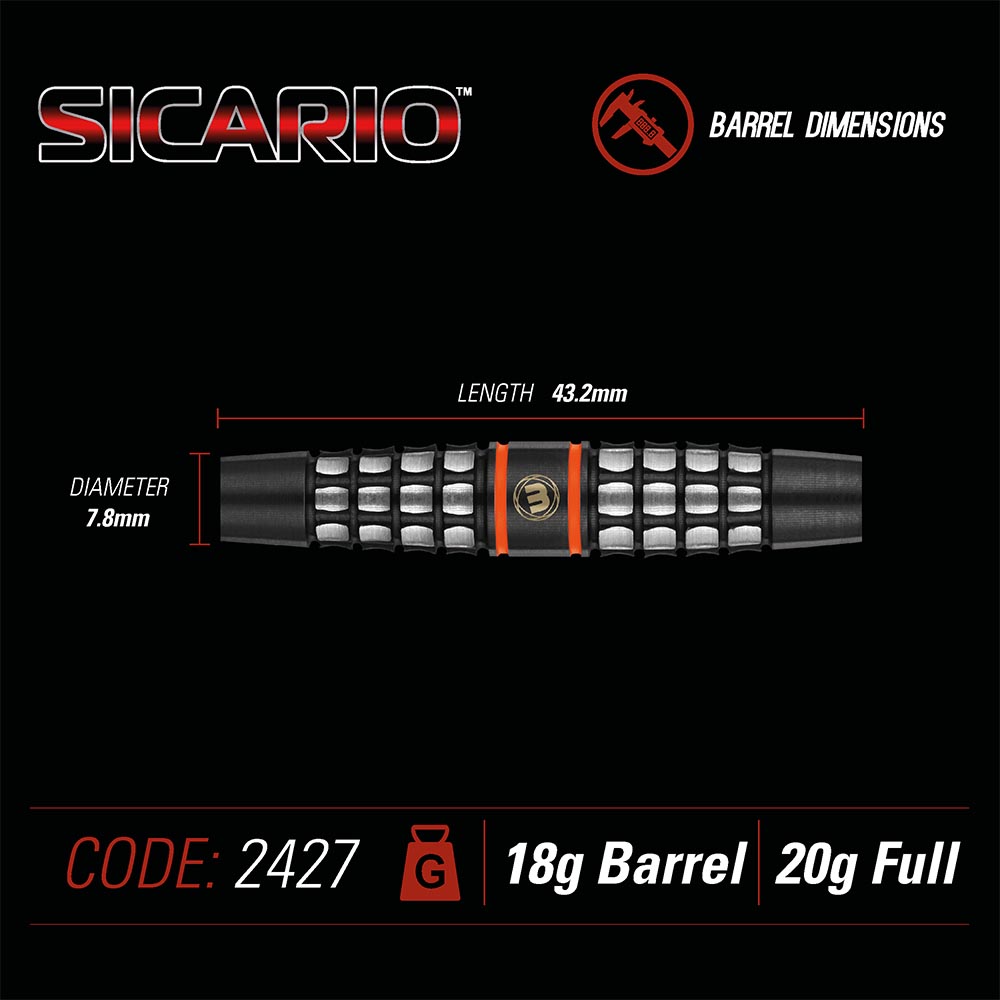 Dardos de la linea Sicario de la marca Winmau Darts ,dardos de tungsteno con un peso total de 20 gramos.