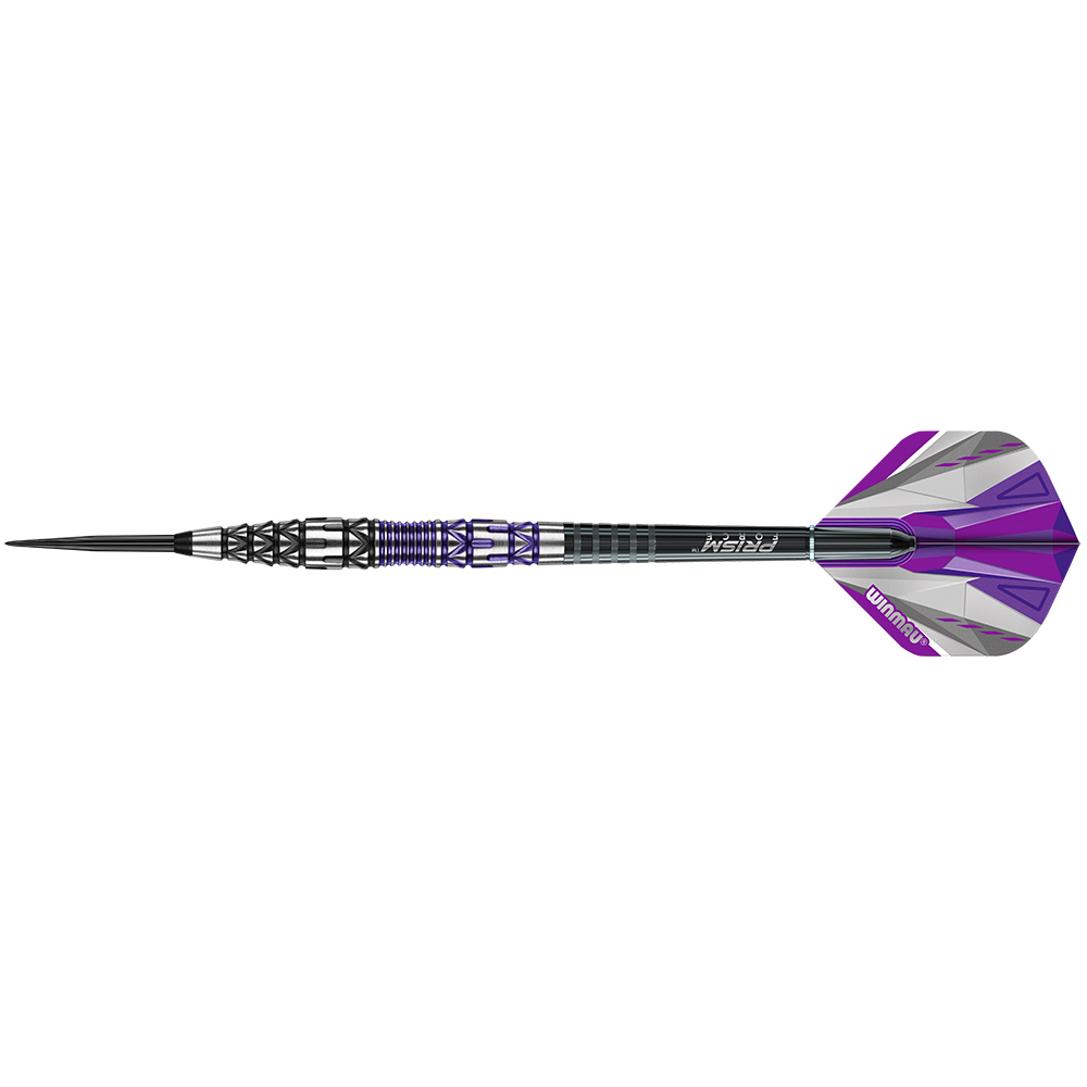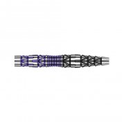 Dardos con cuerpo muy trabajado y elaborado, con varios tipos de tactos y acabado en nitrito de titanio morado.