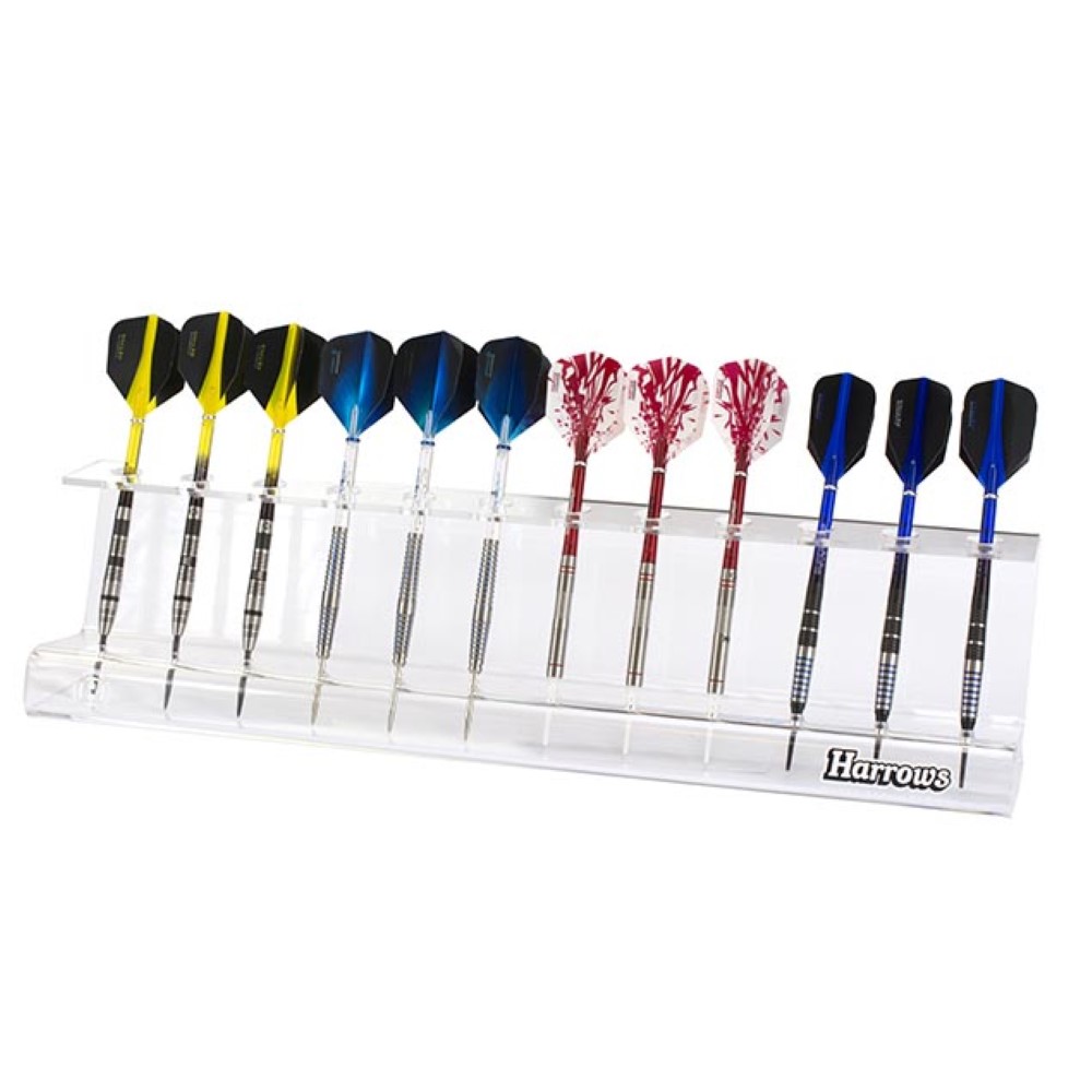 Soporte para exponer 12 dardos fabricado por Harrows Darts.