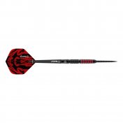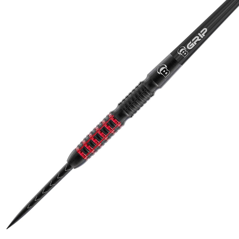 El juego de dardos Bulls Darts DE Magma se compone por 1 set de 3 cuerpos con punta de metal, 1 set de 3 cañas Bulls Grip negras y 1 set de 3 plumas Bulls Metrix Standard rojas.