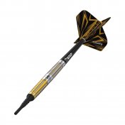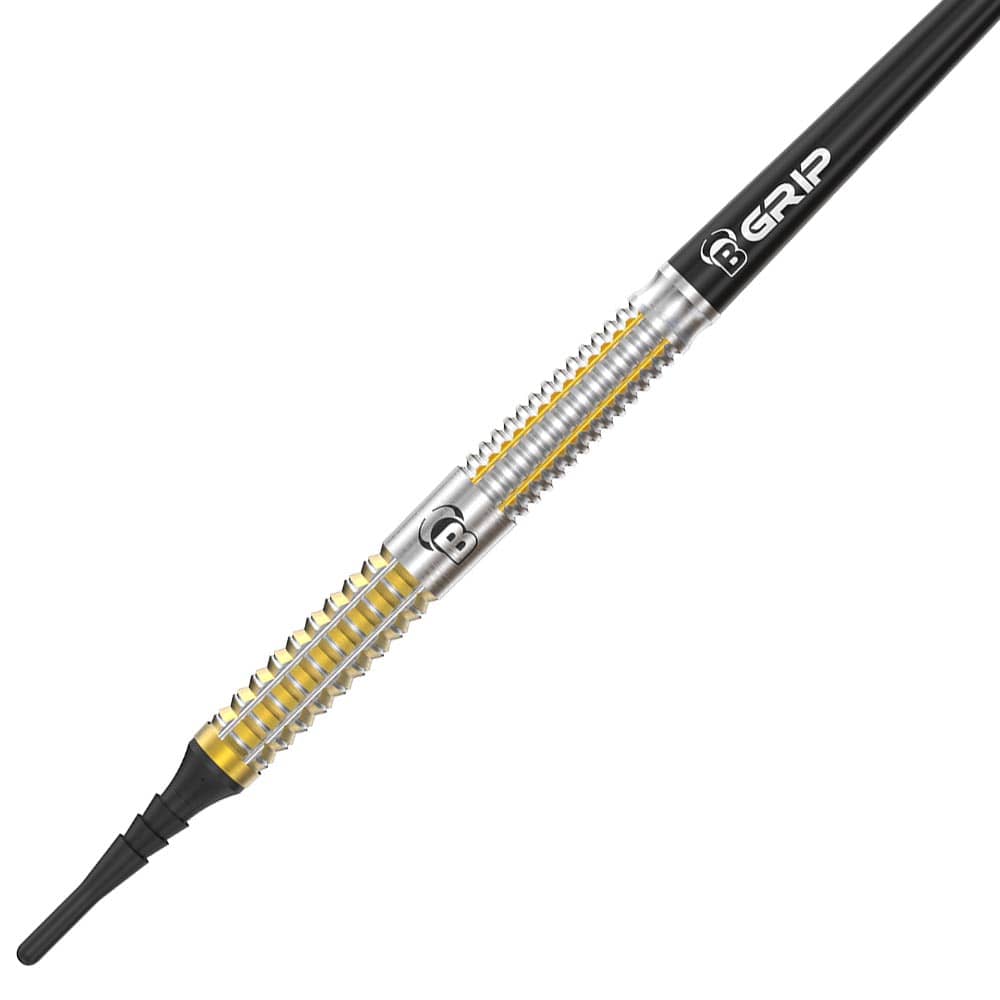 El juego de dardos Bulls Darts DE Stinger se compone por 1 set de 3 cuerpos, 1 set de 3 cañas Bulls Grip negras, 1 set de 3 plumas Bulls Metrix Standard y 3 puntas de plástico rosca 2ba.Metrix Standard.
