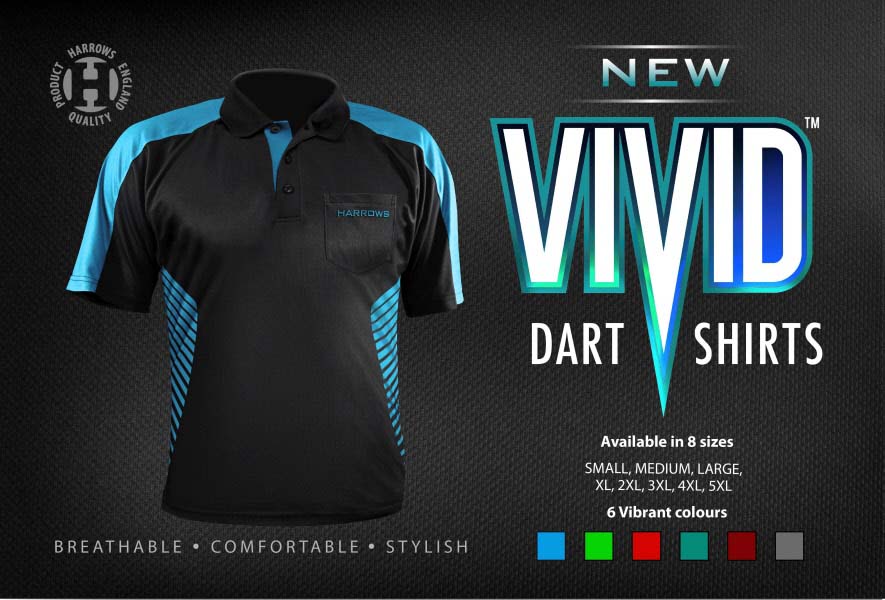 Camiseta fabrica por Harrows Darts modelo Vivid color Aqua.