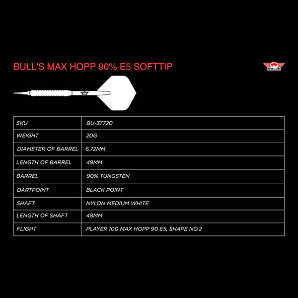 Dardosmania Dardos Bulls Darts Max Hopp E5 P.Plastico 90% 20g BU-37720