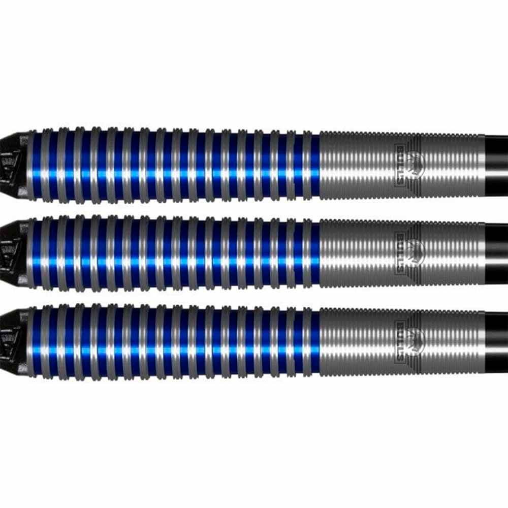 El juego de dardos se compone por 1 set de 3 cuerpos Bulls Romeo Grbavac con punta de acero, 1 set de 3 cañas Bulls y 1 set de 3 plumas