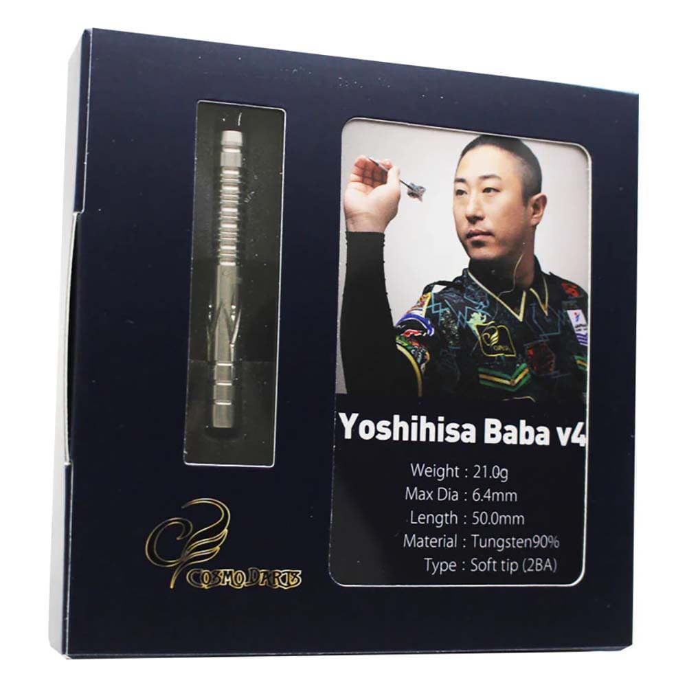 El productos se compone por 1 juego de dardos( 3 barriles) Yoshihisa Baba V4, 1 juego de 3 cañas, 1 juego de 3 plumas Cosmo Darts.