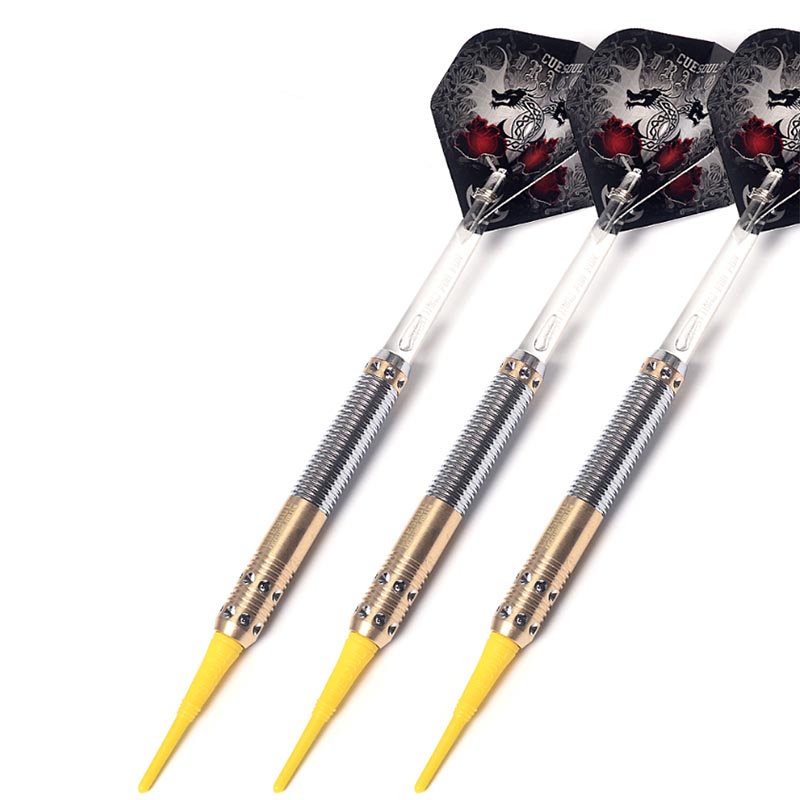 El juego de dardos Dragon se compone por 1 set de 3 cuerpos, 1 set de 3 cañas Cuesoul, 1 set de 3 plumas Cuesoul y 1 set de 3 puntas 2ba.