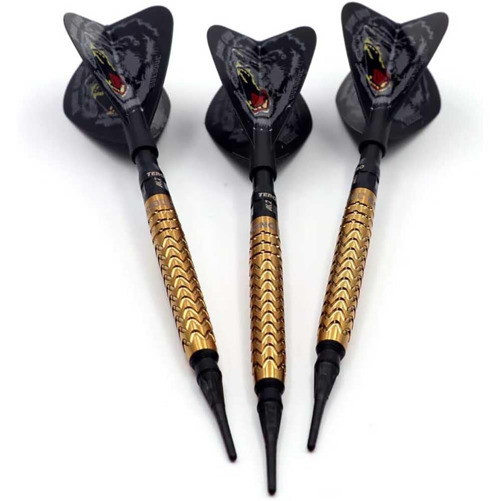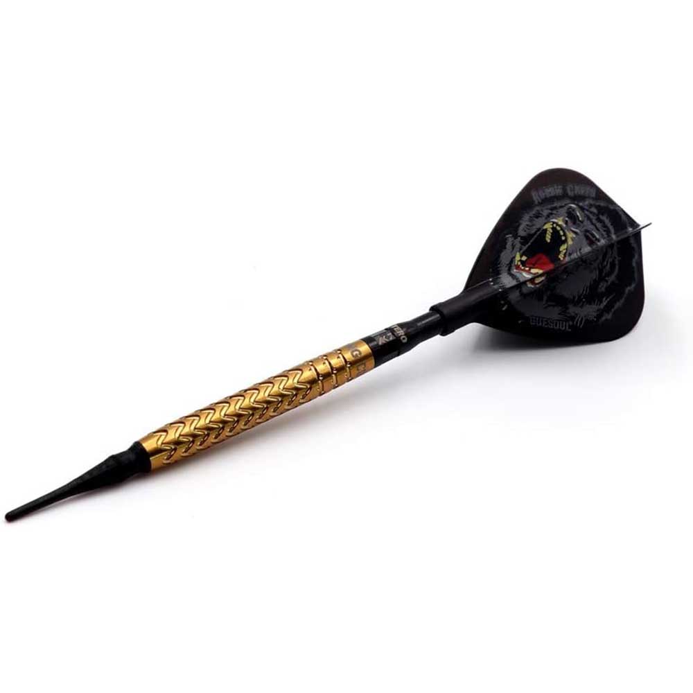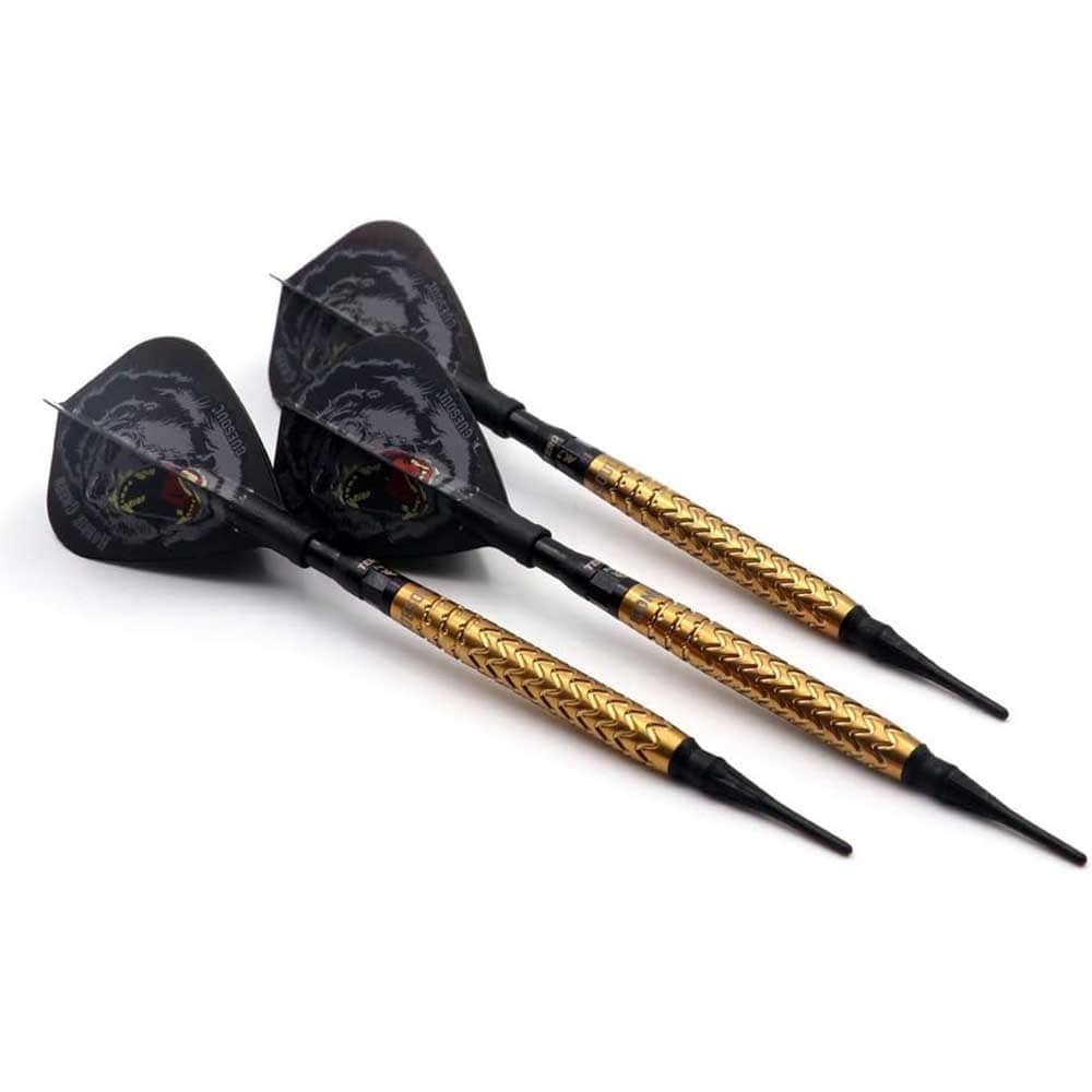 El juego de dardos Kong Gold se compone por 1 set de 3 cuerpos, 1 set de 3 cañas Cuesoul, 1 set de 3 plumas Cuesoul y 1 set de 3 puntas 2ba.