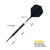El producto se compone por 1 set de 3 cuerpos de dardos Cuesoul Jiho, 1 set de 3 cañas, 1 set de 3 plumas y 1 set de 3 puntas
