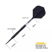 El producto se compone por 1 set de 3 cuerpos de dardos Jiho S4 , 1 set de 3 cañas , 1 set de 3 plumas y 1 set de 3 puntas