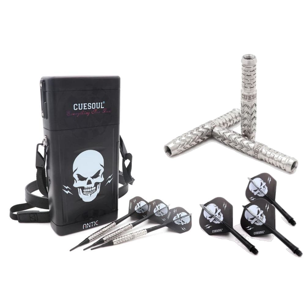 El juego de dardos se compone por 1 set de 3 barriles de dardos de tungsteno Love One 90 %, 1 ser de 3 plumas ROST y 3 puntas 2ba Cuesoul.