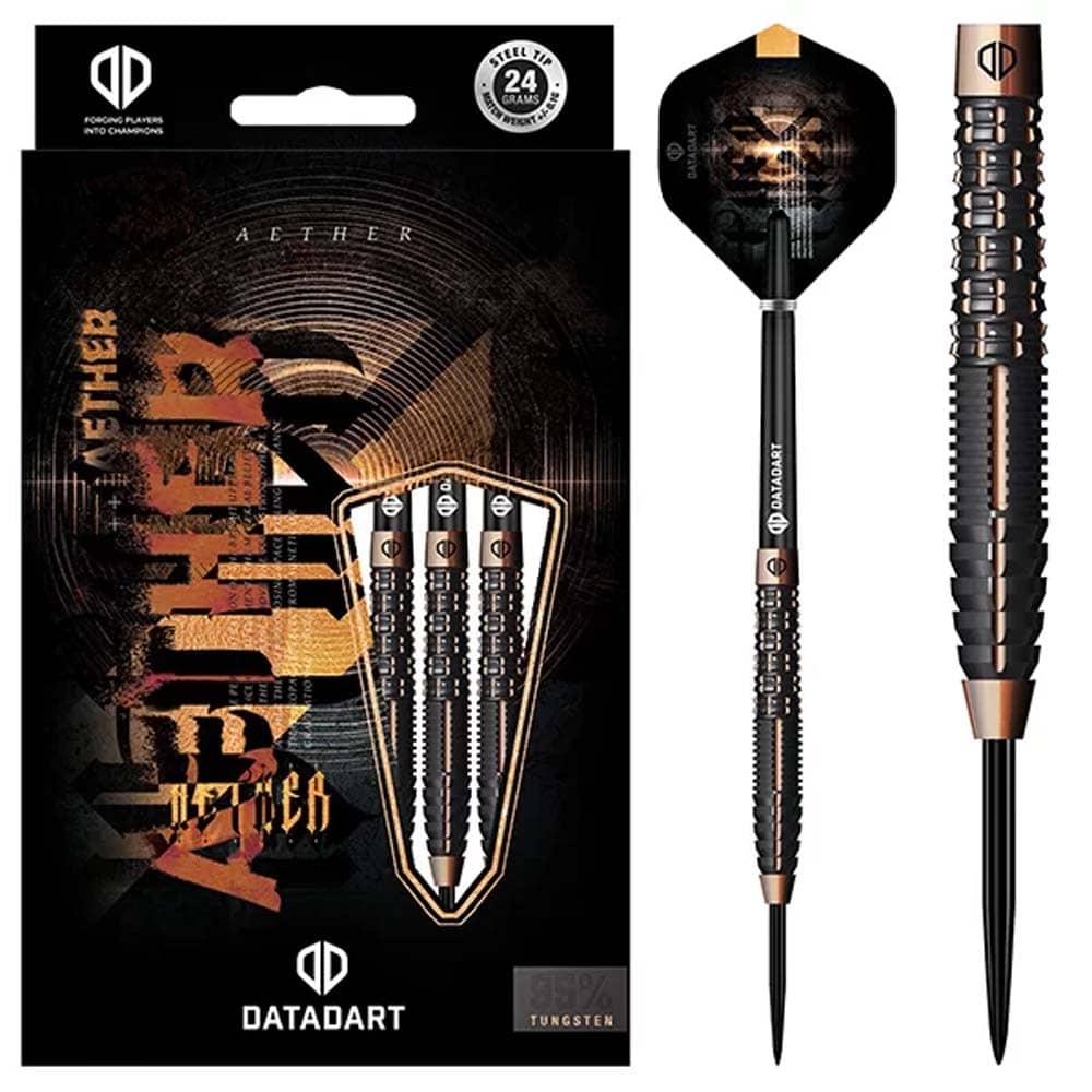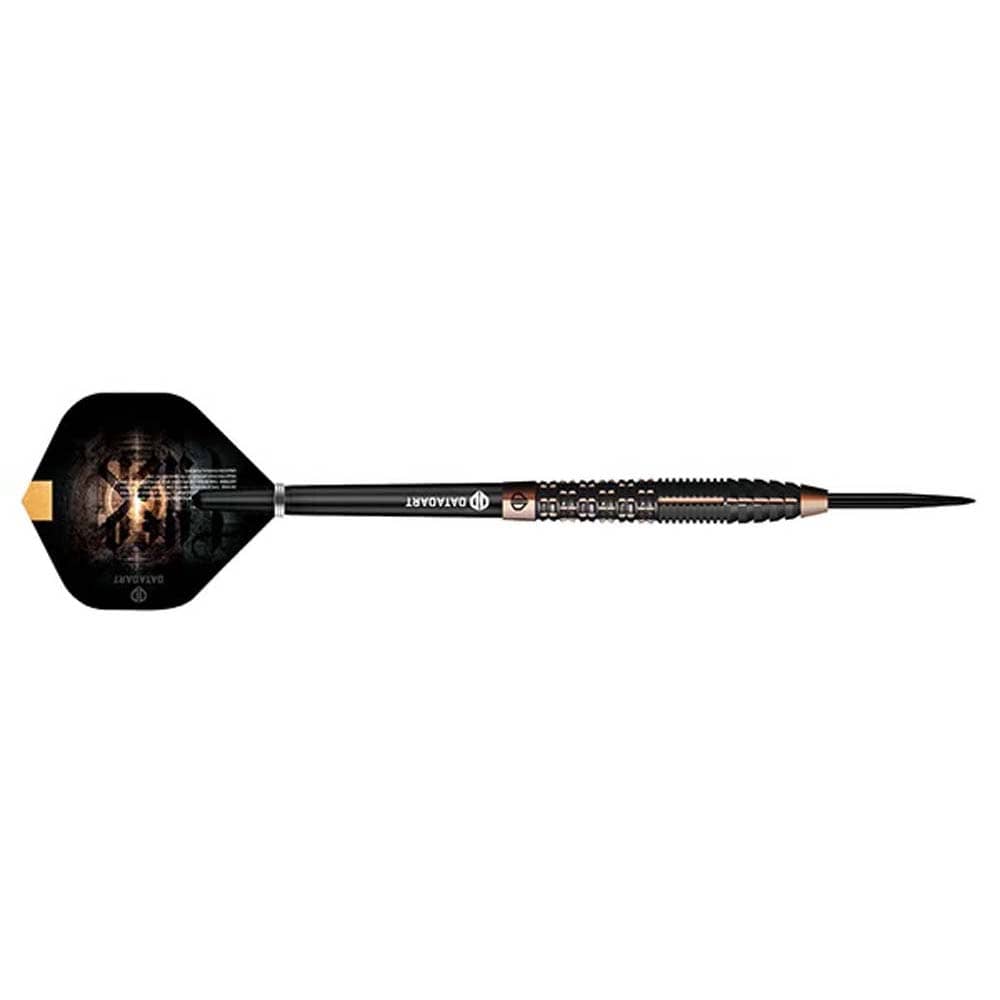 El juego de dardos se compone por 1 set de 3 cuerpos de dardos Datadart Parallax con punta de metal, 1 set 3 cañas y 1 set 3 plumas Datadart.