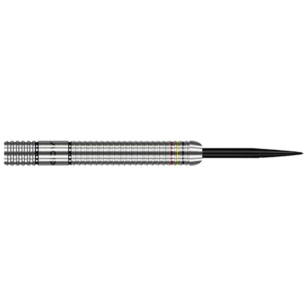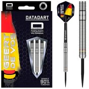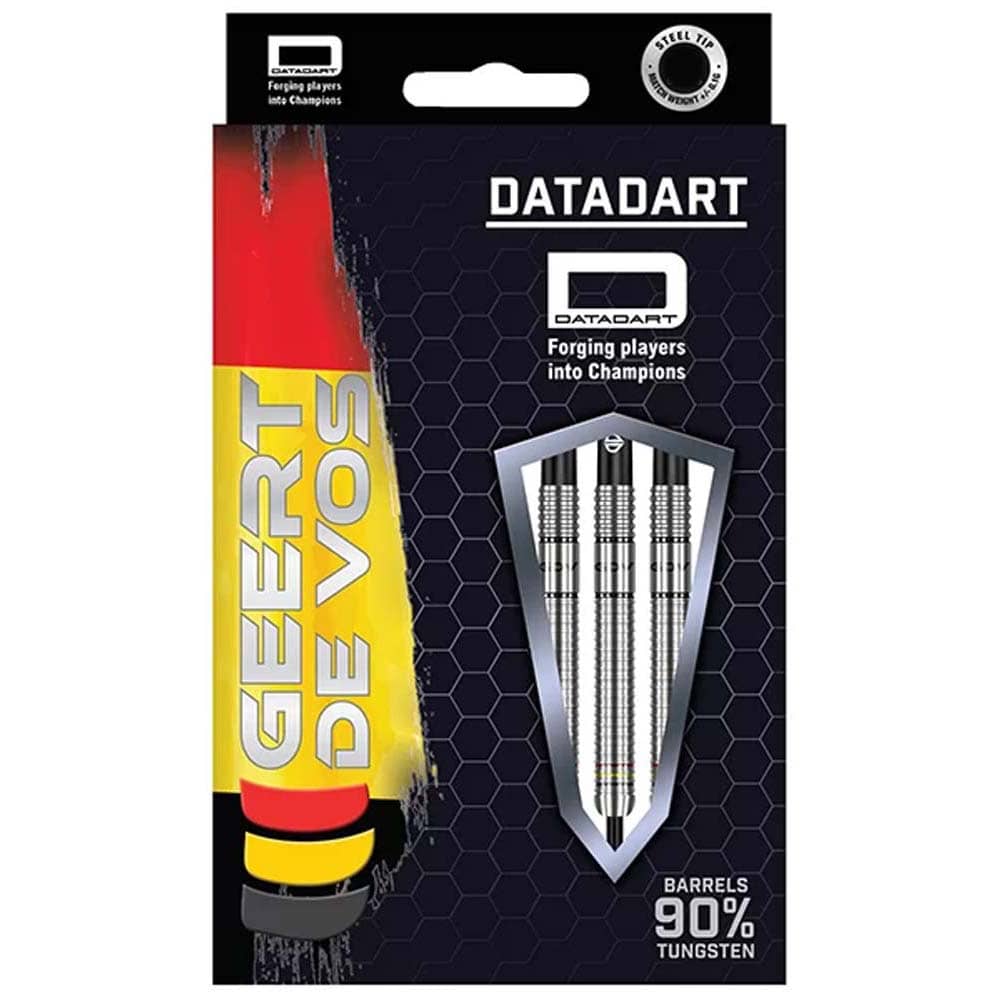 El juego de dardos se compone por 1 set de 3 cuerpos de dardos Datadart Geert De Vos con punta de metal, 1 set de 3 cañas y 1 set de 3 plumas Datadart.