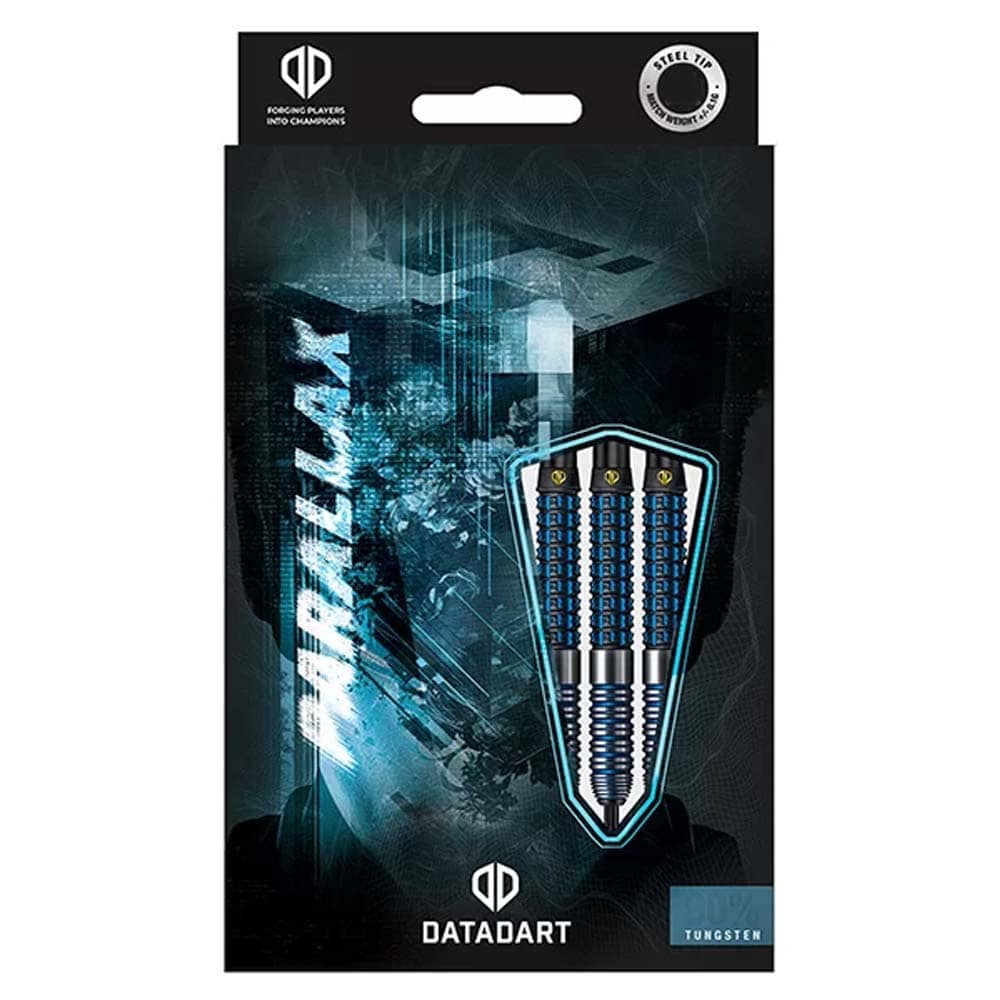El juego de dardos se compone por 1 set de 3 cuerpos de dardos Datadart Parallax con punta de metal, 1 set de 3 cañas y 1 set de 3 plumas Datadart.