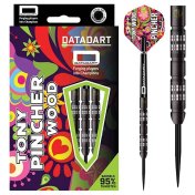 El juego de dardos se compone por 1 set de 3 cuerpos de dardos Datadart Tony Wood con punta de metal, 1 set de 3 cañas y 1 set de 3 plumas Datadart.