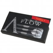 El juego se compone por 1 set de 3 cuerpos de dardos Dynasty A Flow Isabell 2 Jesus Noguera Perea, 1 set de 3 cañas, 1 set de 3 plumas Dynasty y 3 puntas de plástico Lippoint Premium.