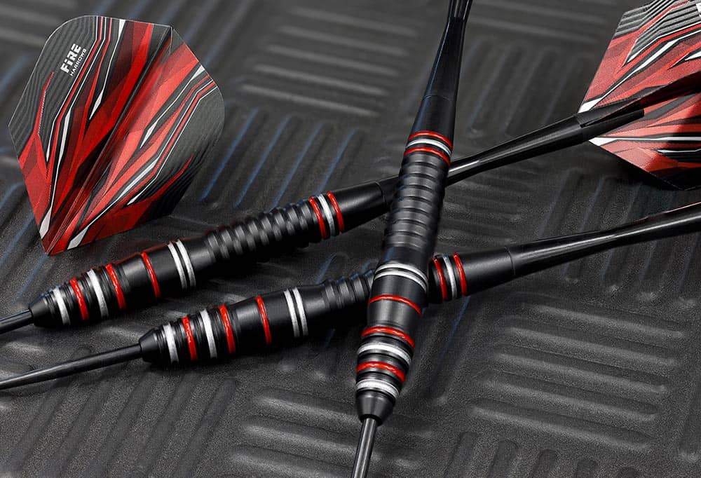 El dardos se compone por 1 set de 3 cuerpos Harrows Darts Fire Hich Grade, 1 set de 3 cañas Harrows y 1 set de 3 plumas Harrows Darts Prime
