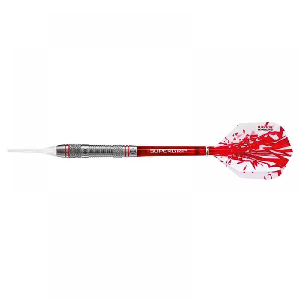 El dardos se compone por 1 set 3 cuerpos de dardos Rapide, 1 set 3 cañas de cañas Supergrip, 1 set 3 plumas Harrows Rapide y 3 puntas 2ba Dimple