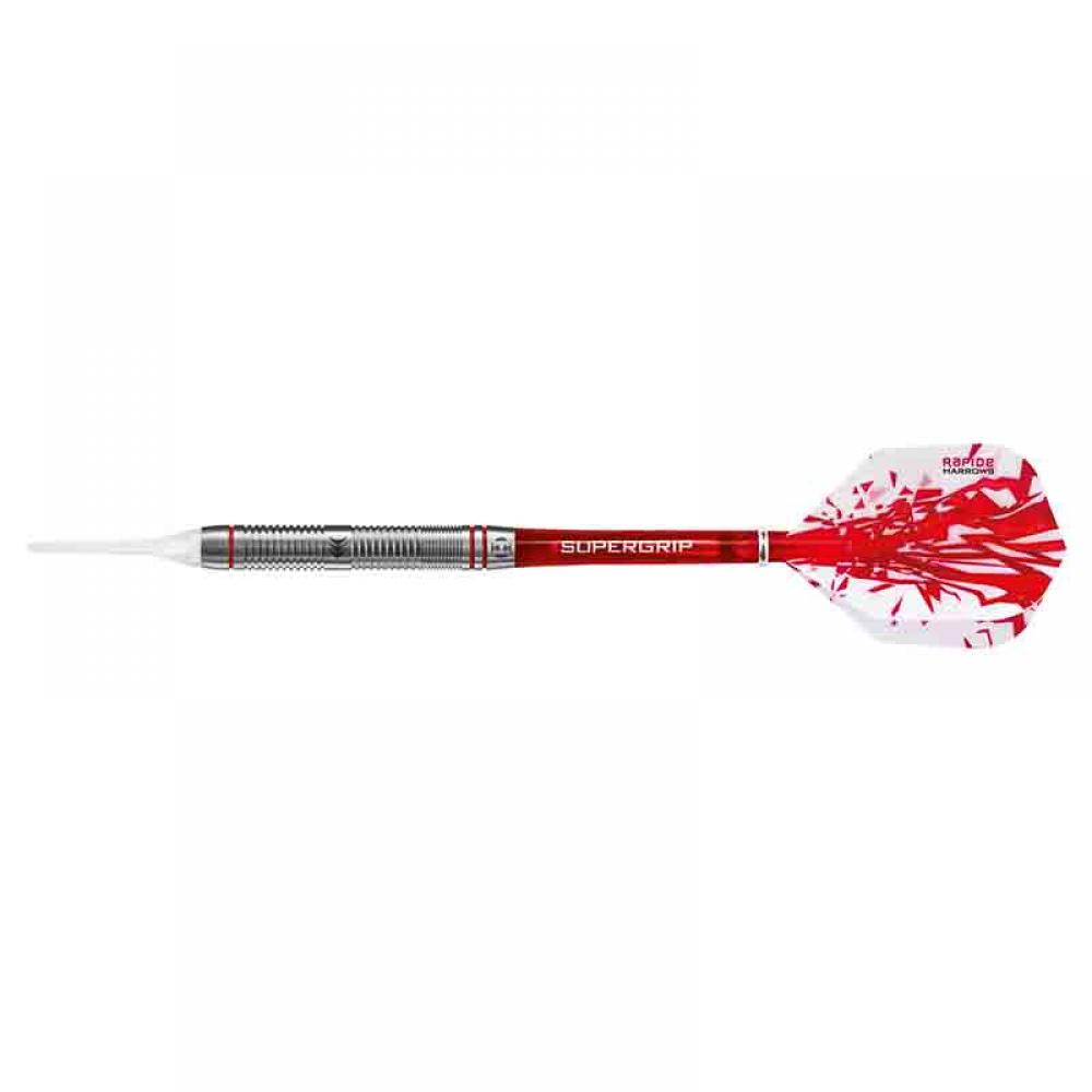 El dardos se compone por 1 set 3 cuerpos de dardos Rapide, 1 set 3 cañas de cañas Supergrip, 1 set 3 plumas Harrows Rapide y 3 puntas 2ba Dimple