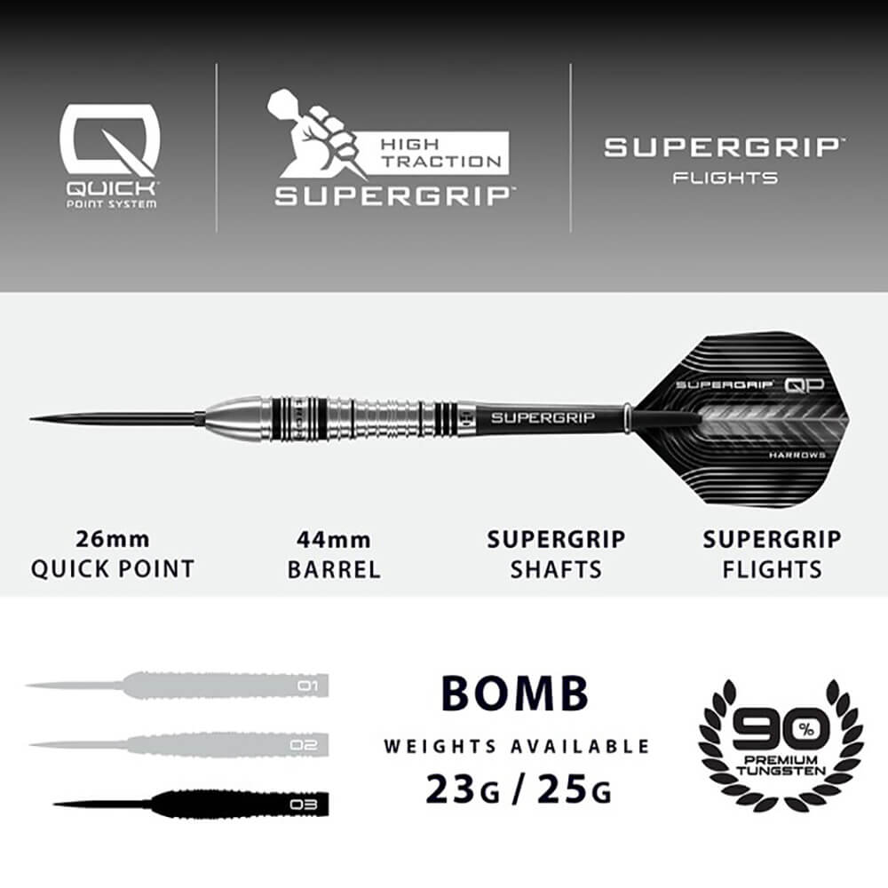 Dardosmania Dardos Harrows Supergrip Bomb Quick Point 90% 25g Punta de Acero BD89225