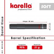 El juego de dardos se compone por 1 set de 3 cuerpos Karella Daniel Klose, 1 set de 3 cañas, 1 set de 3 plumas y 1 set de 3 puntas 2ba