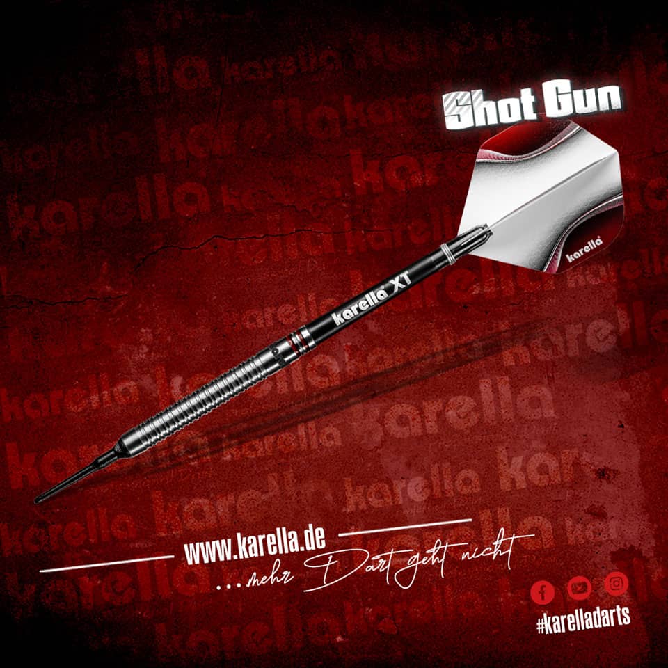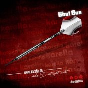 El juego de dardos se compone por 1 set de 3 cuerpos Karella Shotgun, 1 set de 3 cañas, 1 set de 3 plumas y 1 set de 3 puntas 2baLargo barril: 50mm