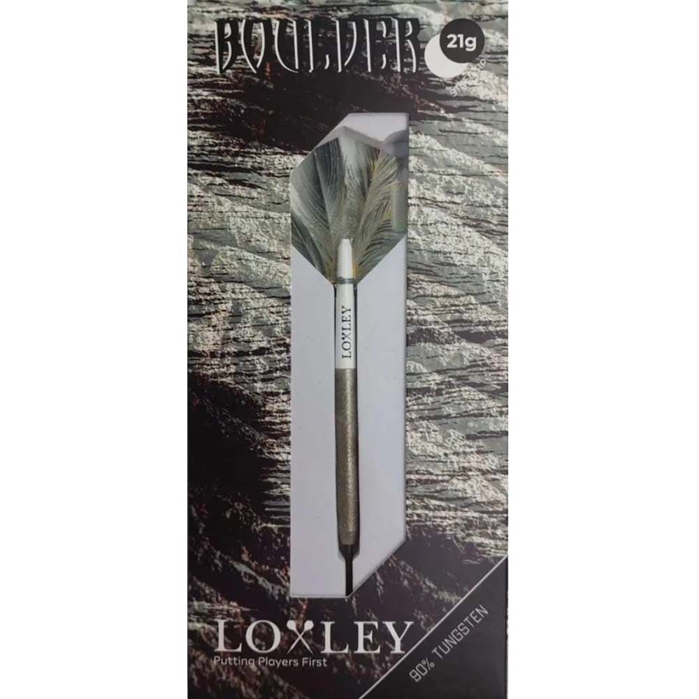 El producto se compone por 1 juego de 3 dardos Loxley Darts Boulder con punta de acero, 1 set de 3 cañas Loxley y 1 set de 3 plumas Loxley