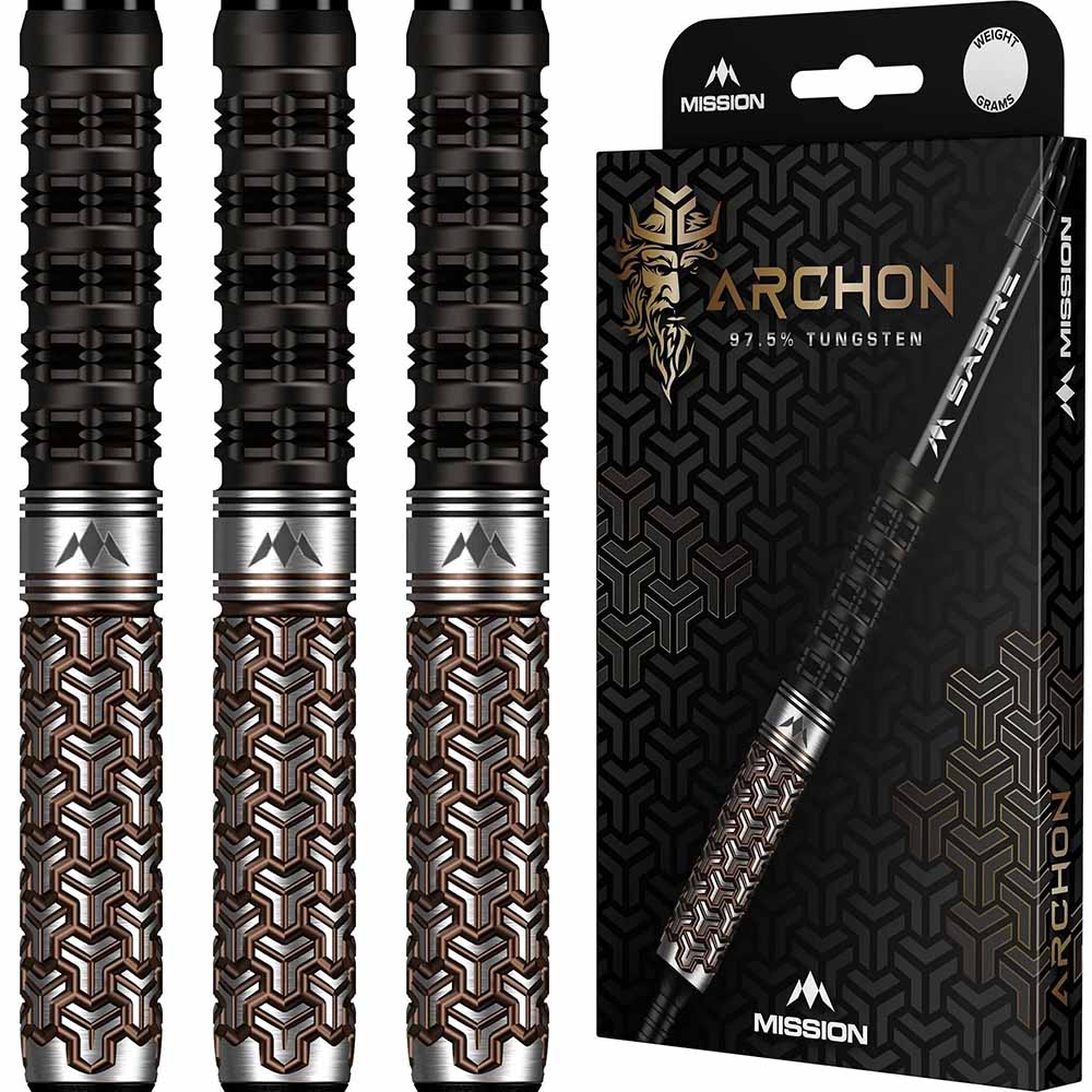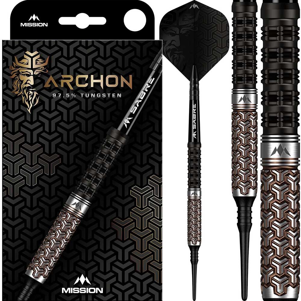 El juego de dardos se compone por 1 set de 3 cuerpos de dardos Archon , 1 set de 3 cañas Mission negro short 34mm, 1 set de 3 plumas Mission Anchon Standard y 3 puntas plastico 2ba 4mm