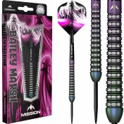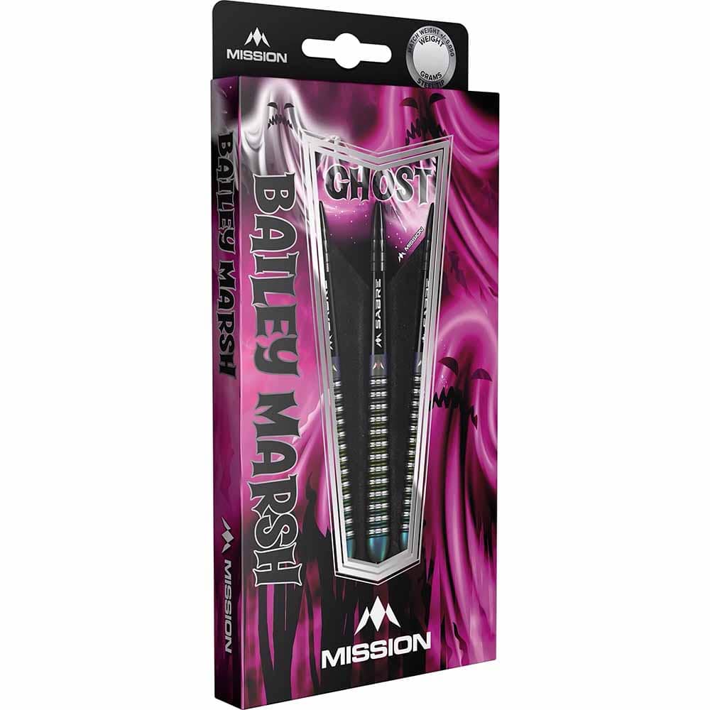 El juego de dardos se compone por 1 set de 3 cuerpos de dardos Mission Bailey Marsh con puntas de acero, 1 set de 3 cañas y 1 set de 3 plumas.