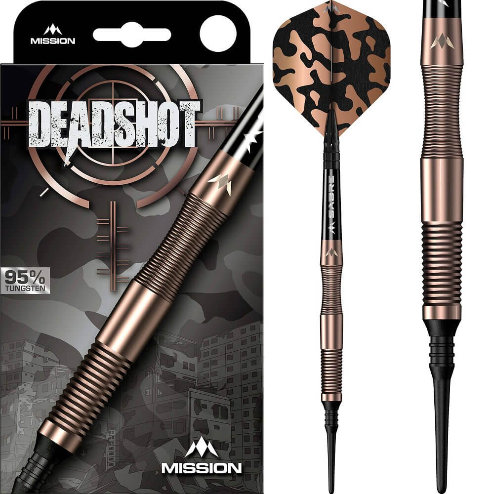 El juego de dardos se compone por 1 set de 3 cuerpos de dardos Dead , 1 set de 3 cañas Mission negro short 34mm, 1 set de 3 plumas Mission Tycho Standard y 3 puntas plastico 2ba 4mm