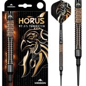 El juego de dardos Mission Horus se compone por 1 set de 3 cuerpos, 1 set de 3 cañas, 1 set de 3 plumas y 1 set de 3 puntas 2ba 4mm