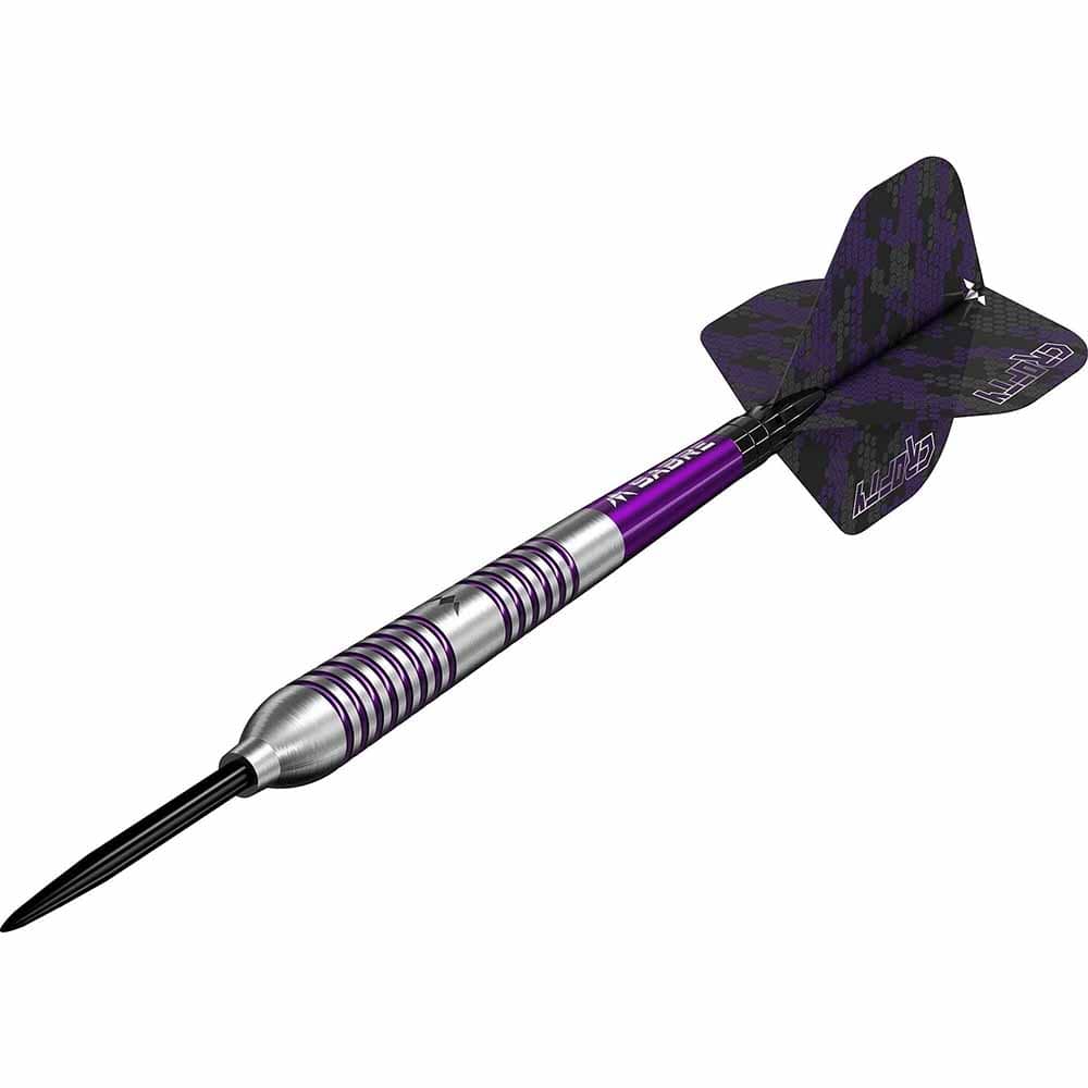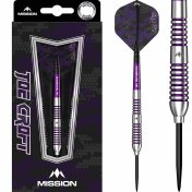 El juego de dardos se compone por 1 set de 3 cuerpos de dardos Mission Joe Croft con puntas de acero, 1 set de 3 cañas y 1 set de 3 plumas.