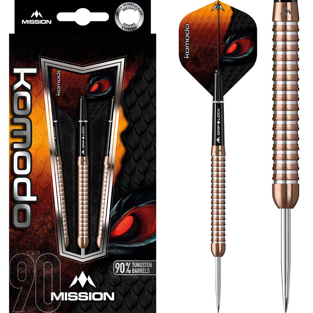 El juego de dardos se compone por 1 set de 3 cuerpos de dardos Mission con puntas de acero, 1 set de 3 cañas Mission y 1 set de 3 plumas Mission.