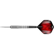 El juego de dardos se compone por 1 set de 3 cuerpos de dardos Mission con puntas de acero, 1 set de 3 cañas Mission y 1 set de 3 plumas Mission.