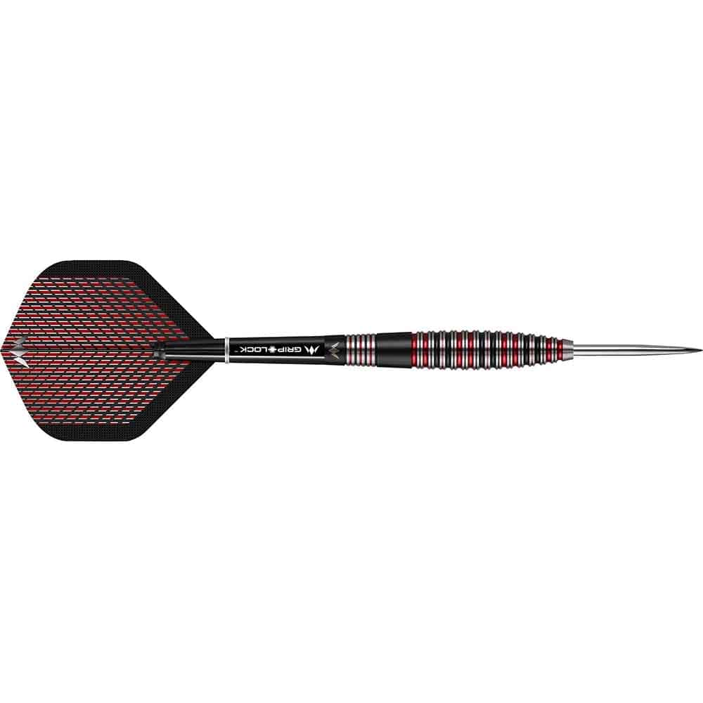El juego de dardos se compone por 1 set de 3 cuerpos de dardos Mission con puntas de acero, 1 set de 3 cañas Mission y 1 set de 3 plumas Mission.