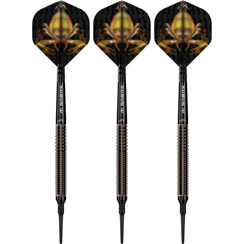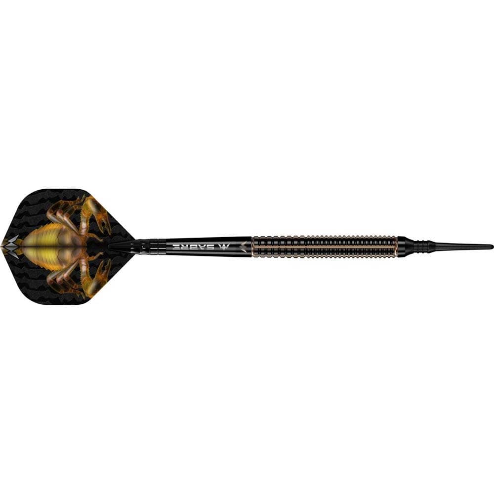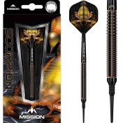 El juego de dardos Mission Scorpion se compone por 1 set de 3 cuerpos, 1 set de 3 cañas, 1 set de 3 plumas y 1 set de 3 puntas 2ba 4mm