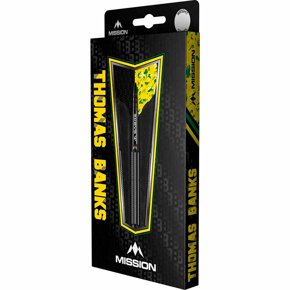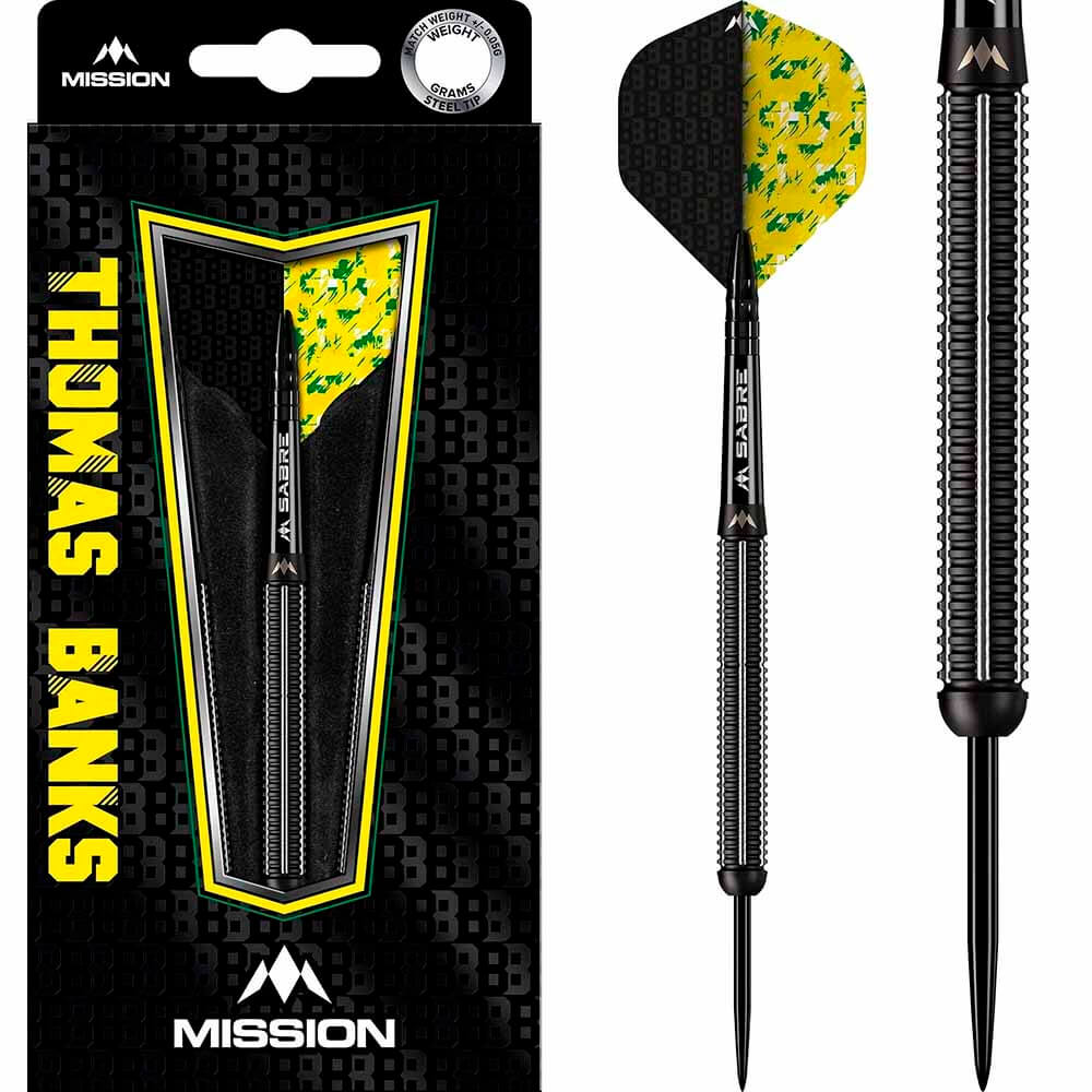 El juego de dardos se compone por 1 set de 3 cuerpos de dardos Thomas Banks Black PVD, 1 set de 3 cañas Mission y 1 set de 3 plumas Mission.
