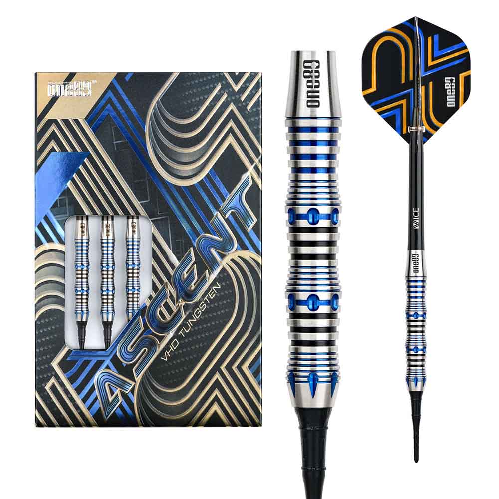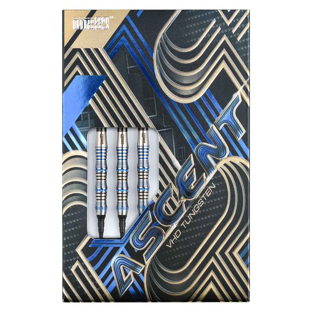 El producto se compone por 1 set de 3 cuerpos dardos One 80 Ascent, 1 set de 3 cañas One 80 Darts y 1 set de 3 plumas One 80 Darts