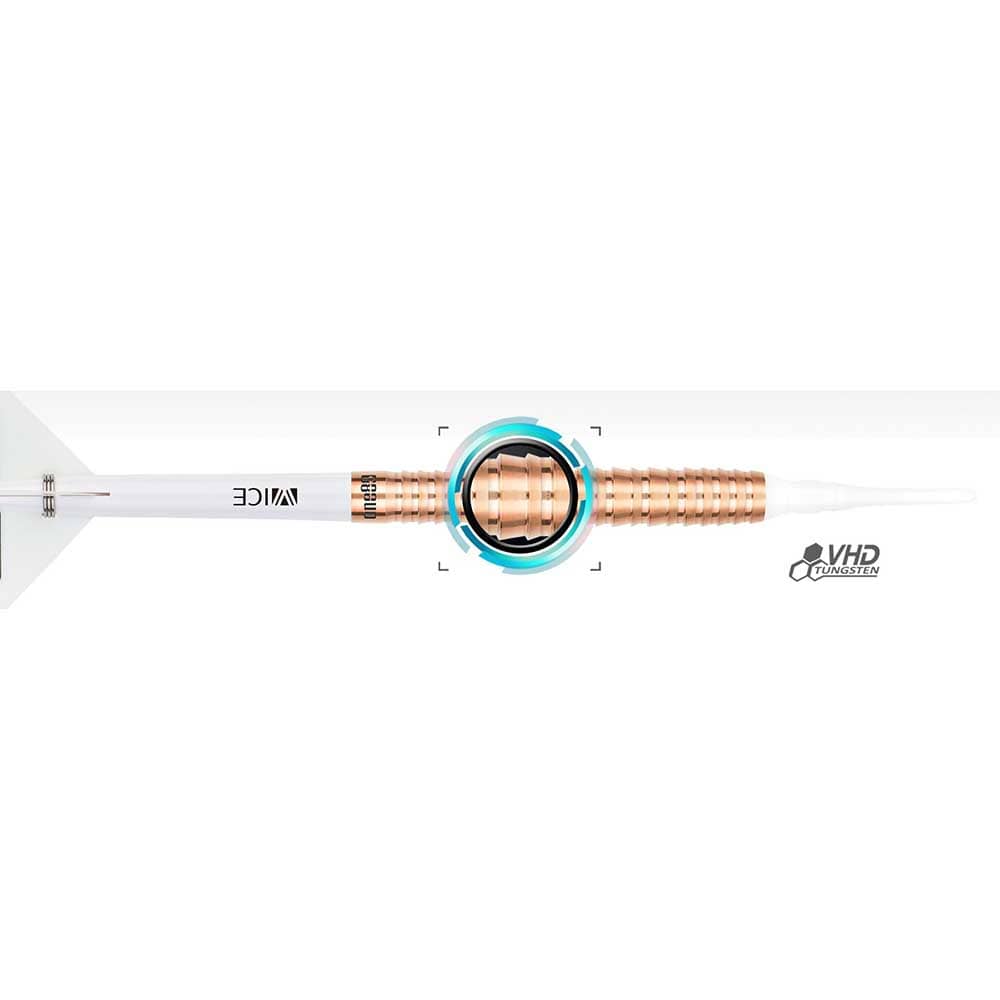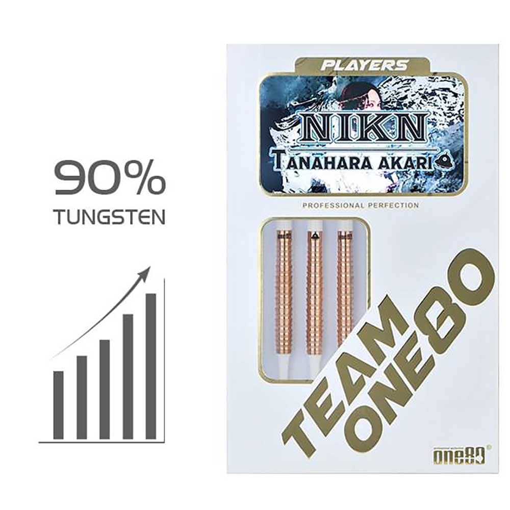 El juego de dardos One80 Akari Tanahara Signature Rose Gold se compone por 1 set de 3 cuerpos, 1 set de 3 cañas Vice, 1 set de 3 plumas y 3 puntas de plástico rosca 2ba 4mm.