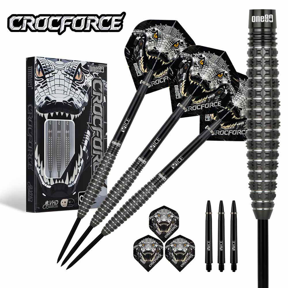El juego de dardos Crocforce CF4 se compone por 1 set de 3 cuerpos, 1 set de 3 cañas y 1 set de 3 plumas