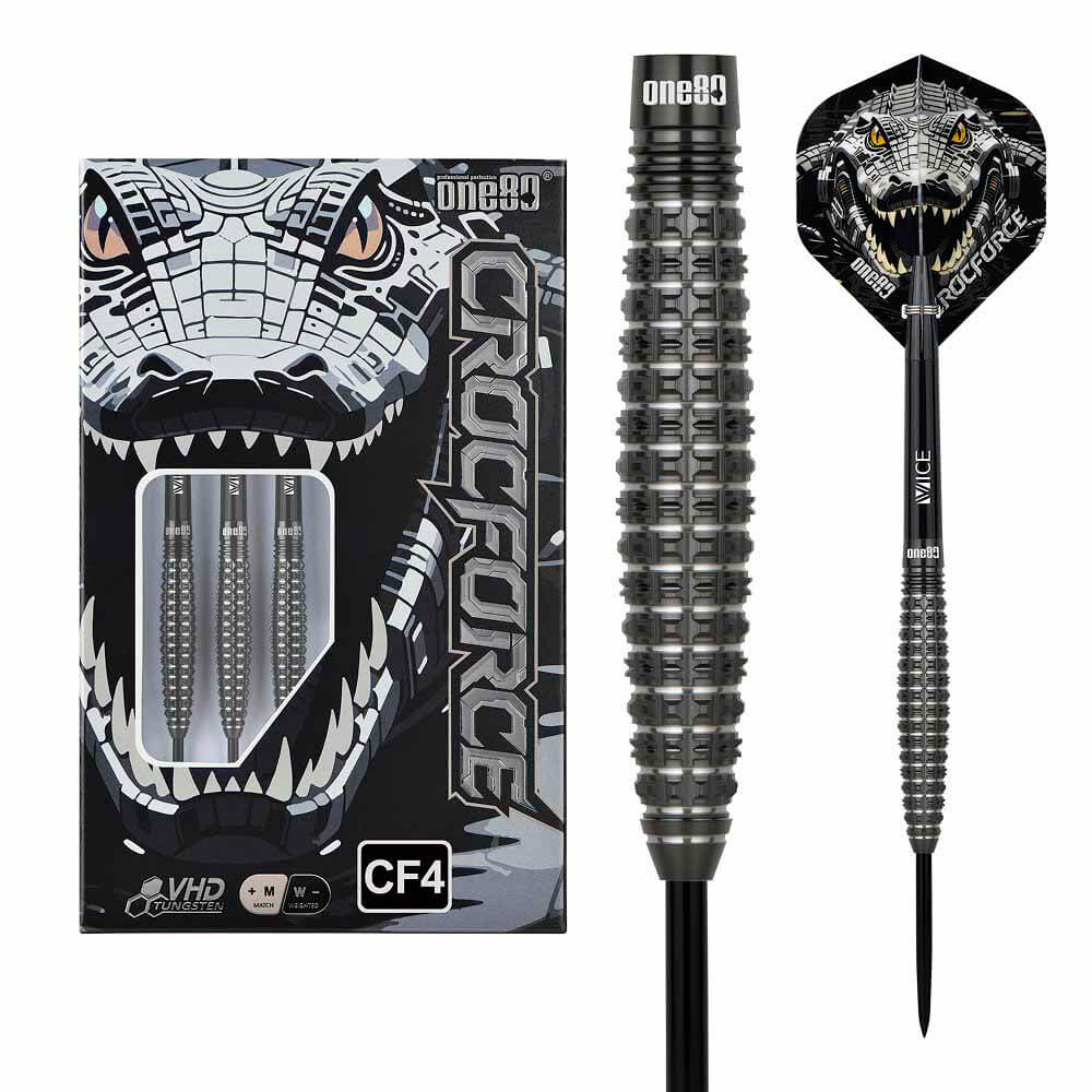 El juego de dardos Crocforce CF4 se compone por 1 set de 3 cuerpos, 1 set de 3 cañas y 1 set de 3 plumas
