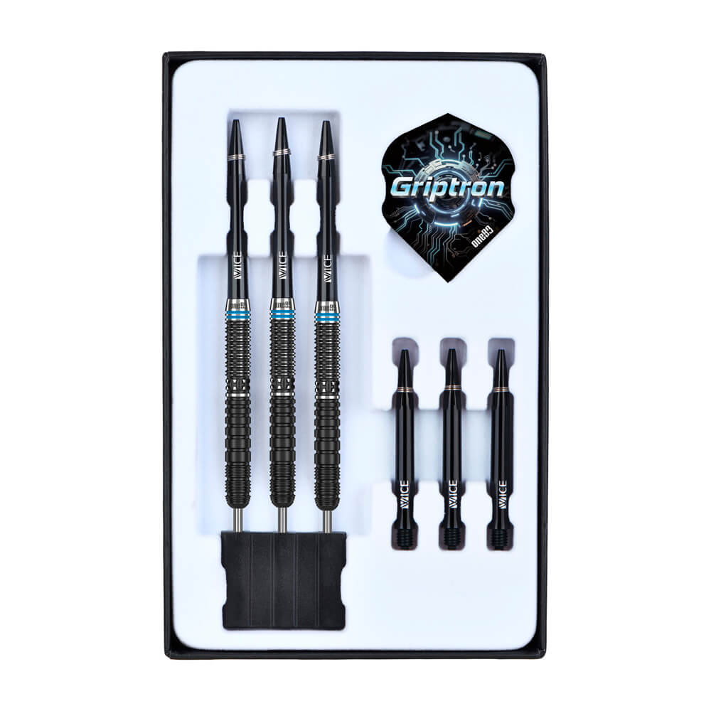 El juego de dardos Griptron GT4 se compone por 1 set de 3 cuerpos, 1 set de 3 cañas y 1 set de 3 plumas