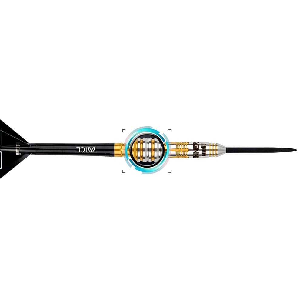 El juego de dardos One80 Gunner Omega I Lourence Ilagan se compone por 1 set de 3 cuerpos con punta de metal, 1 set de 3 cañas Vice y 1 set de 3 plumas.