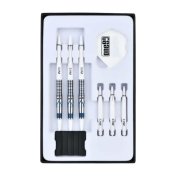 El juego de dardos Panther-N se compone por 1 set de 3 cuerpos, 1 set de 3 cañas , 1 set de 3 plumas y 1 set de 3 puntas 2ba.